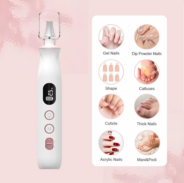 3:Professional Manicure and Pedicure Set: Say goodbye to annoying cords that tangle and limit your reach. The Karrong electric nail file is designed for a salon-quality hand and foot care experience right at home. This nail drill setis perfect for trimming, grinding, and polishing both natural and thick nails. It effectively removes cuticles, calluses, dead skin, corns, and hard skin, leaving your nails healthy and well-groomed.Enjoy comfortable and professional nail care with ease