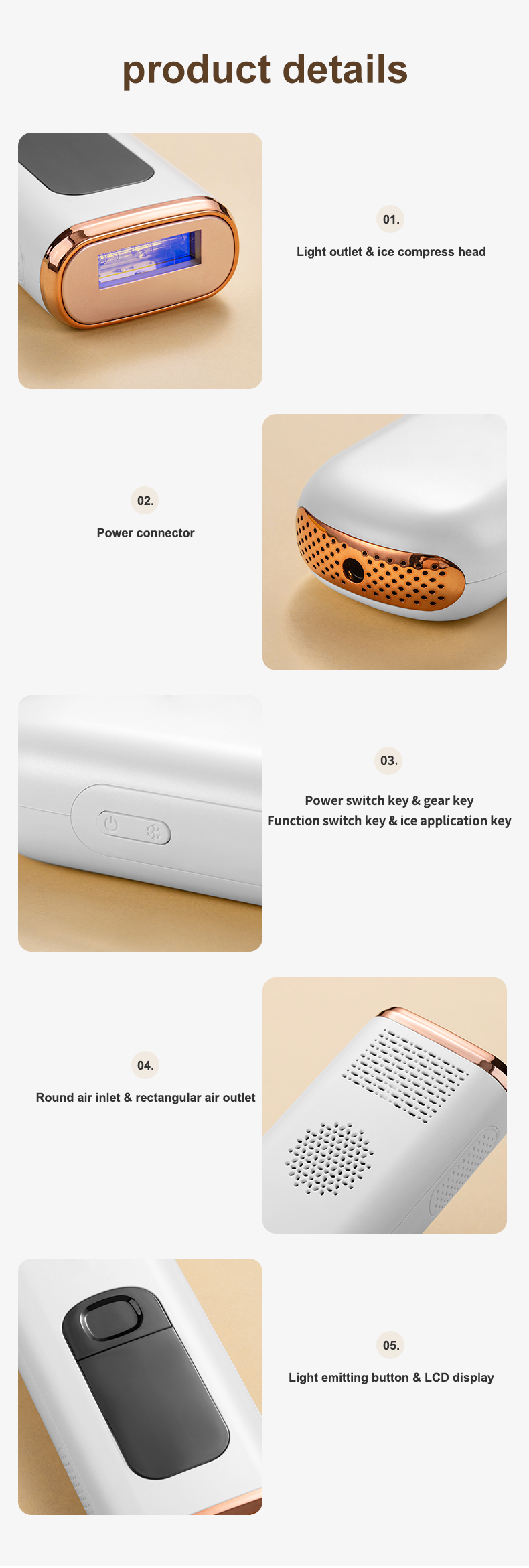 (Catatan: 1, Tidak cocok untuk kulit bertato dan kecokelatan, area luka, dan hamil. 2, Ini adalah perangkat plug-in, harap jaga perangkat selalu terhubung ke daya selama perawatan. )