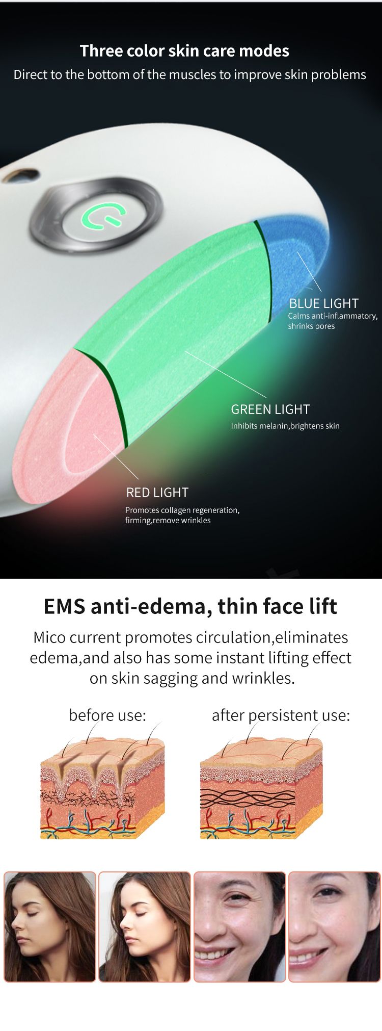 Tiga mode perawatan kulit warna, Langsung ke bagian bawah otot untuk memperbaiki masalah kulit