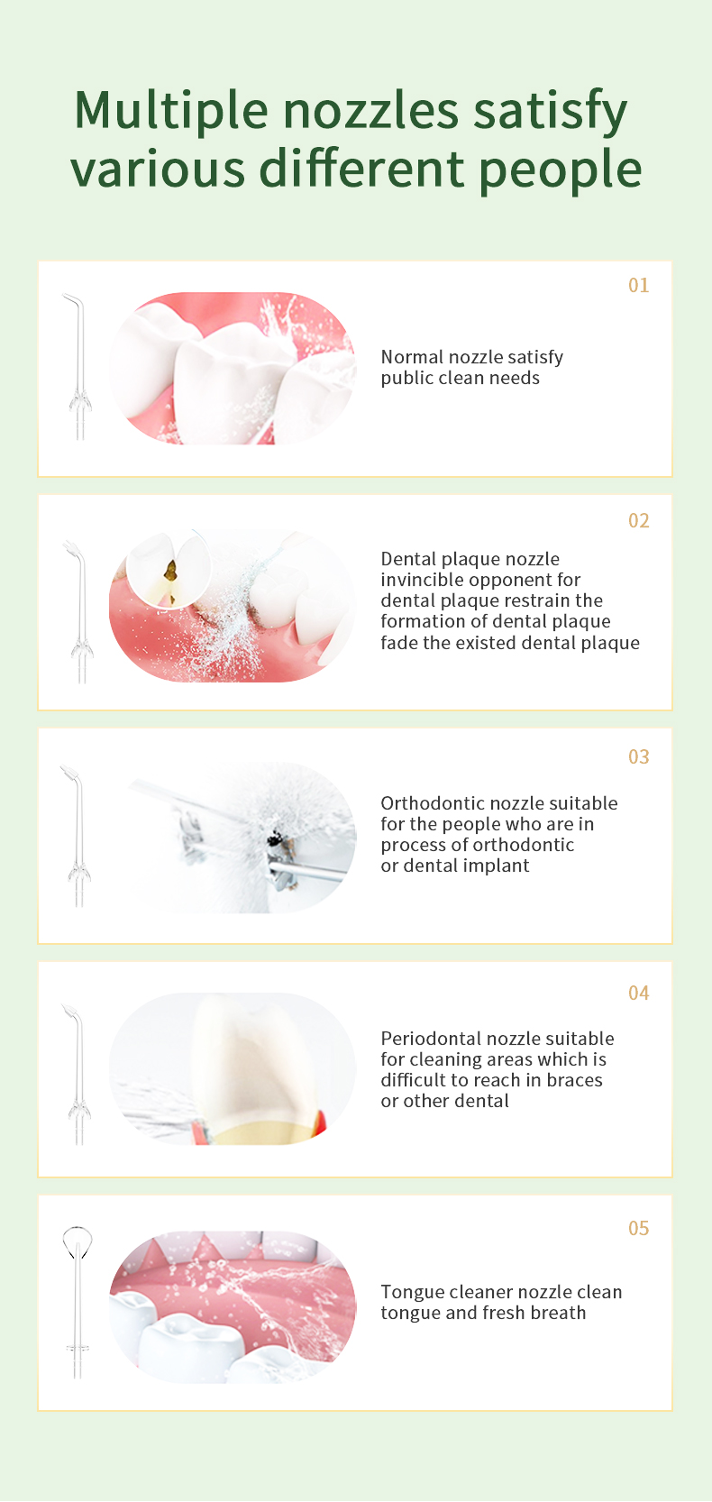 Dievaluasi secara profesional oleh tim dokter gigi Amerika, flosser kami menyediakan lima mode nyaman untuk memenuhi kebutuhan berbeda dari 99% kelompok usia berbeda, sekaligus memastikan kinerja dan masa pakai yang optimal. Pegangan ergonomis dan 6 nozel yang dapat diganti memastikan pengalaman yang nyaman dan serbaguna. Itu bisa menjadi hadiah yang bijaksana untuk ulang tahun, Natal, Thanksgiving, Hari Ibu, Valentine, atau menjaga kesehatan mulut orang yang Anda cintai